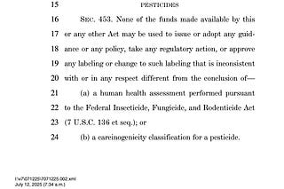 Get the pesticide liability shield removed from the pending Interior Appropriations Bill
